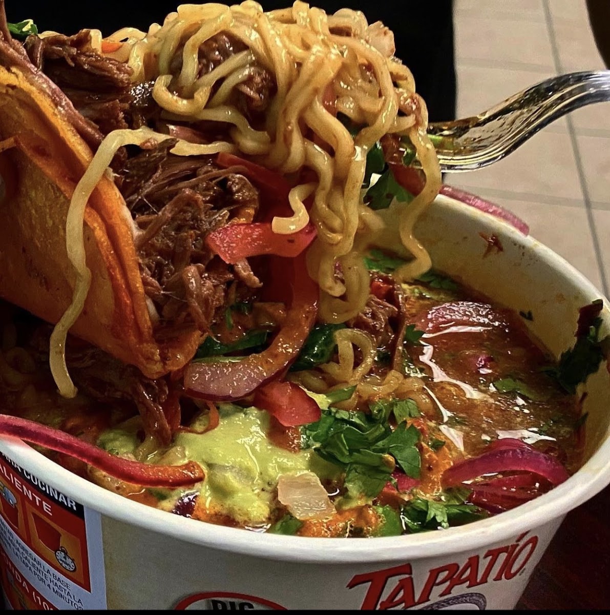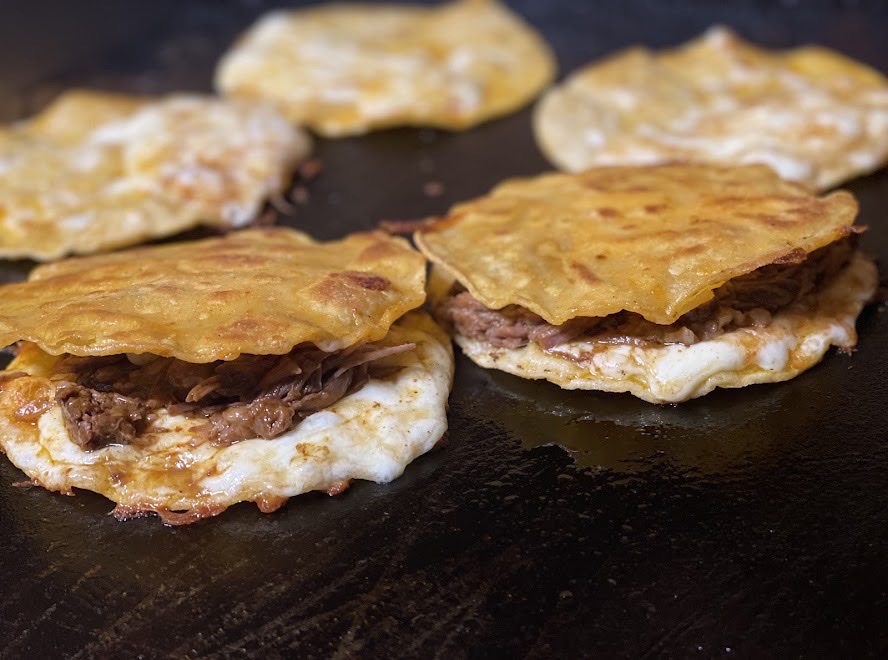 combo comes with 2 quesotacos, 1 mulita, a consome. topped with cilantro, onion, picked onion, red and green salsa.